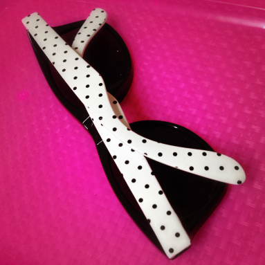 Black Ray Ban-esque frames with polka dotted arms?!